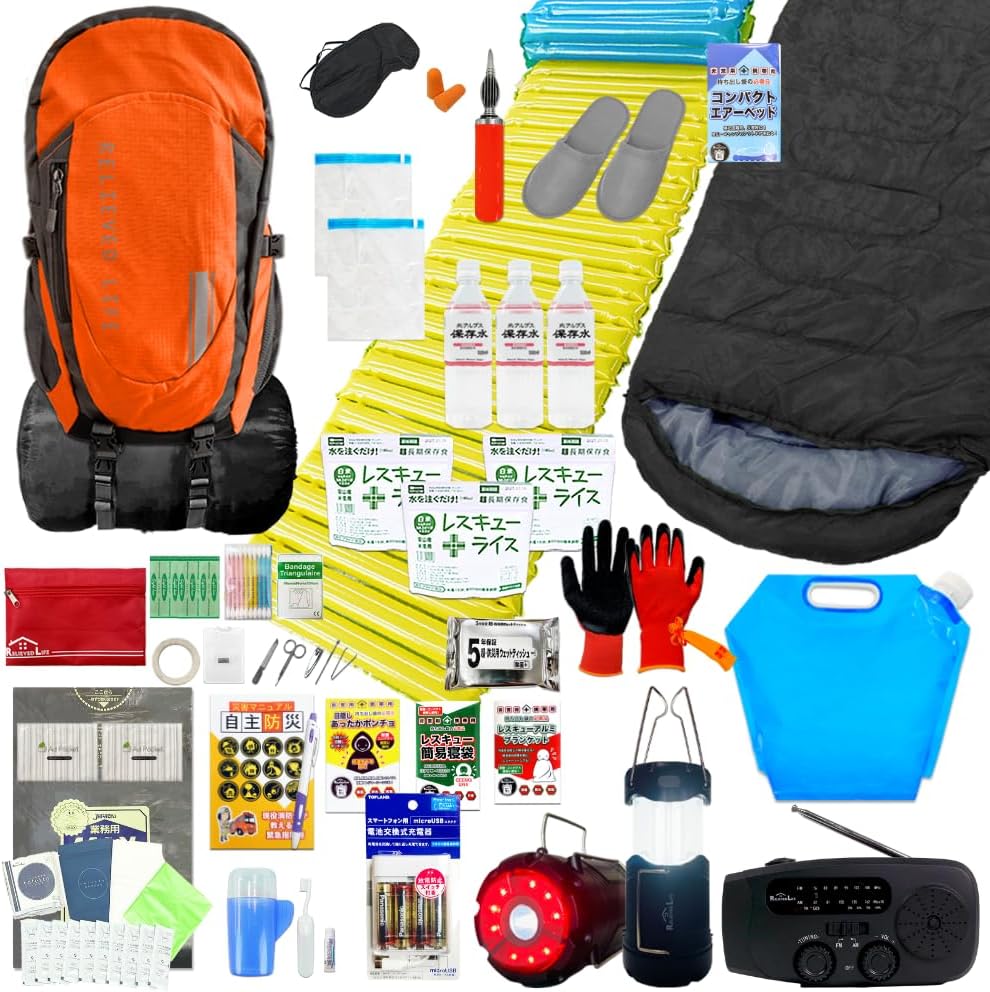 - ラジオ、エアマット、救急セットなどが一式揃ったもの